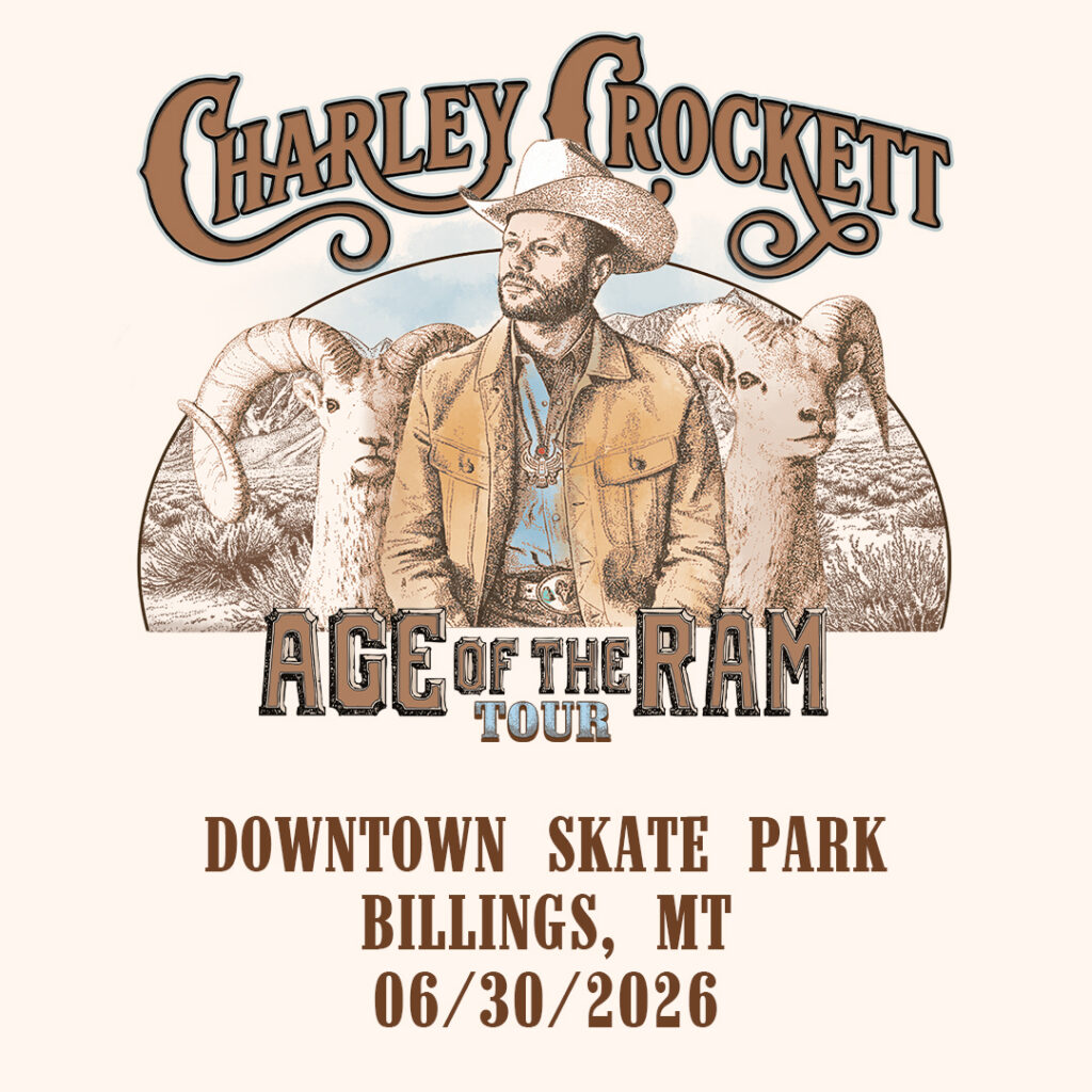 Charley Crockett. With his Age of the Ram Tour rolling into the Downtown Billings Skatepark on June 30, 2026, Charley Crockett is bringing Willie Nelson energy and Texas grit to a setting unlike any other.