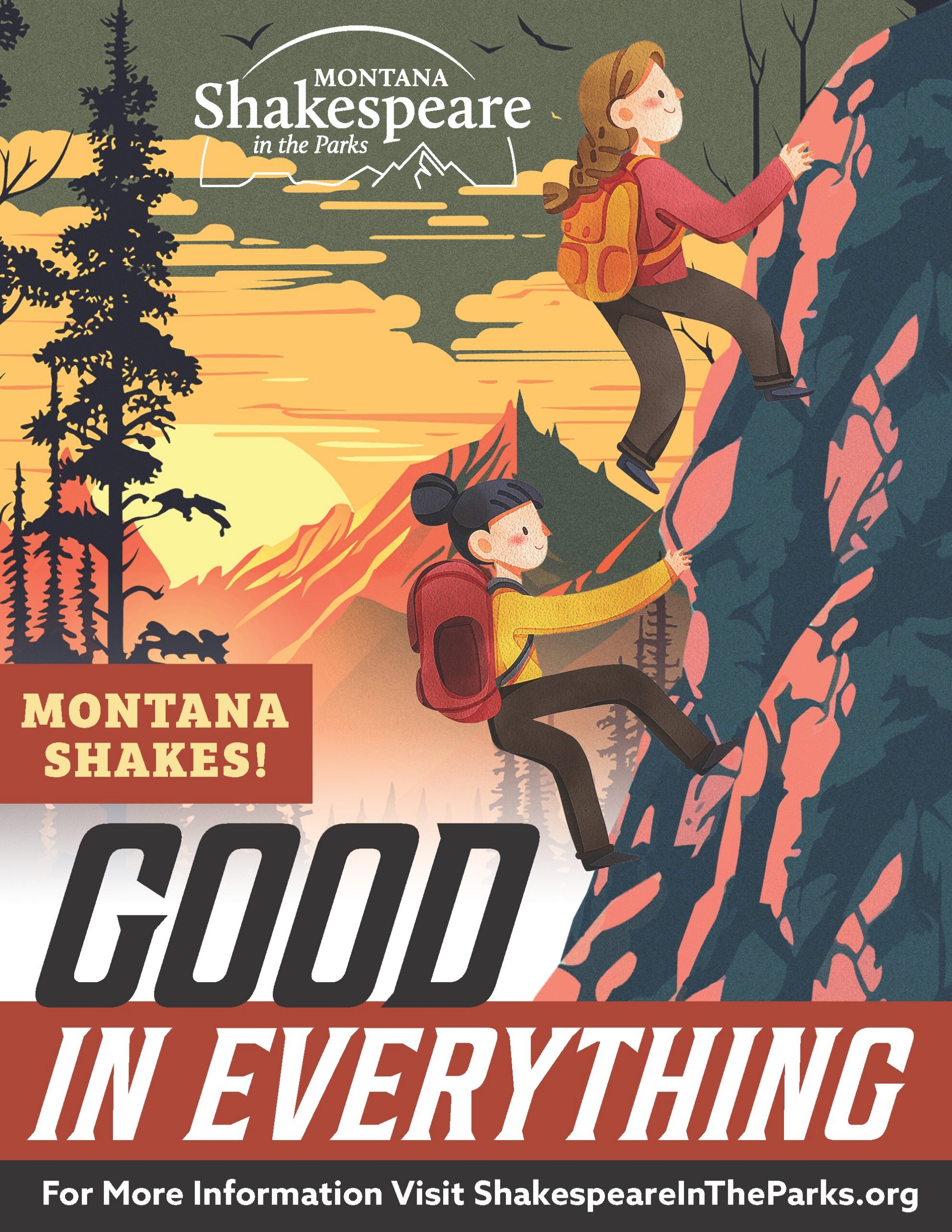 Montana Shakespeare in the Parks invites the Greater Yellowstone Area community to attend a FREE performance of their spring Montana Shakes! program, “Good In Everything,” an original play based on “As You Like It,” directed by Matt Foss. Created for grades K-6, families are sure to delight in this interactive, fun play!