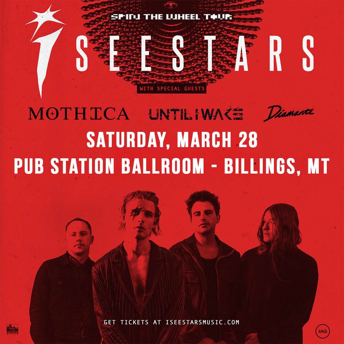 Please join us for I SEE STARS SPIN THE WHEEL TOUR with special guests MOTHICA, Until I Wake, and Diamante Saturday, March 28th in the Pub Station Ballroom.