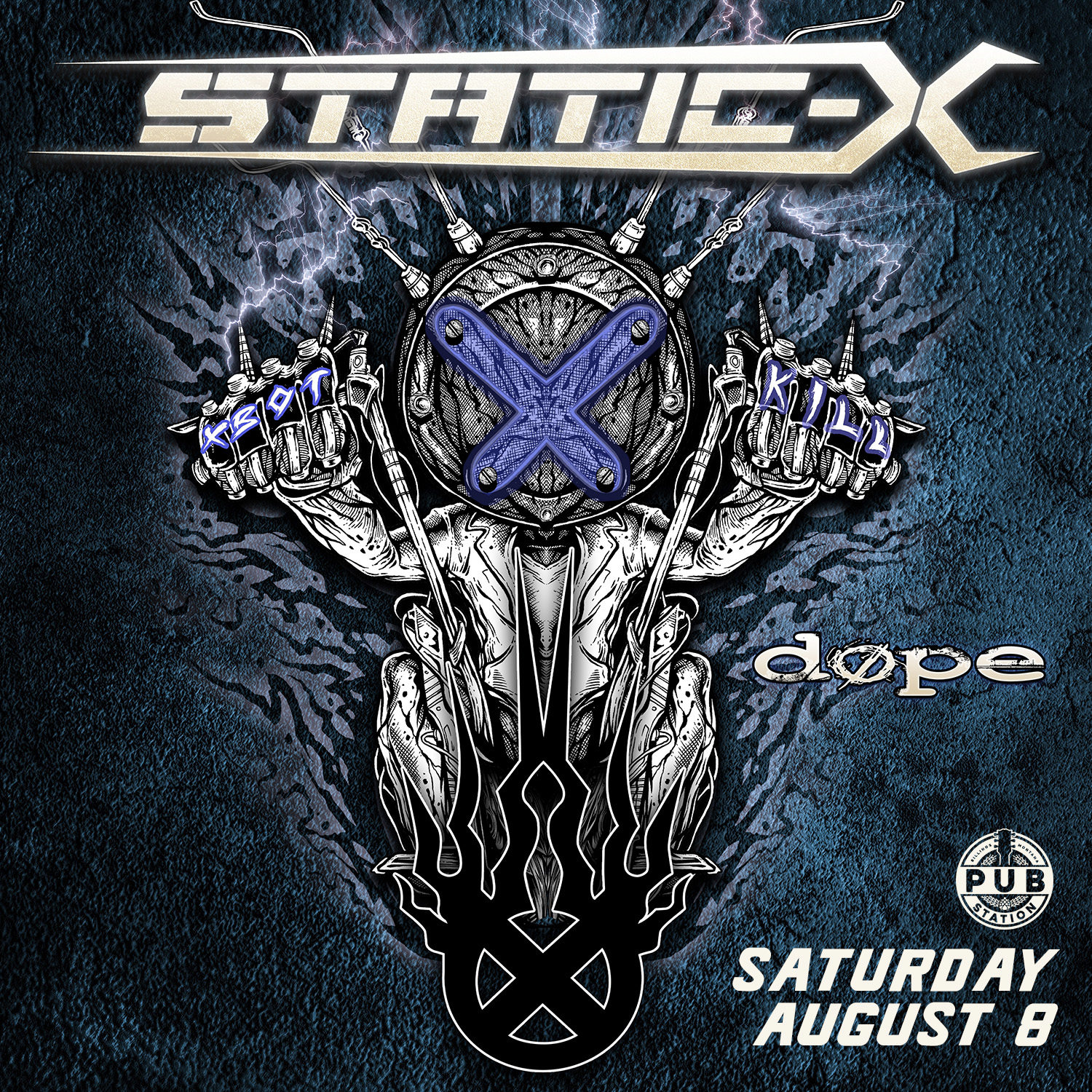 Home Events in Billings Leisure Events Static-X with special guest Dope and Render Me Silent Static-X with special guest Dope and Render Me Silent Static-X brings their genre-defining industrial metal with special guests, Dope and Render Me Silent to the Pub Station Ballroom on Saturday August 8th. + Add to Google Calendar + iCal / Outlook export Date Aug 08 2026 Time 8:00 pm - 11:00 pm More Info Read More Location The Pub Station 2502 First Ave N, Billings, MT 59101 Category Leisure Events Read More Share this event