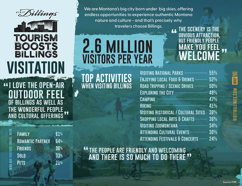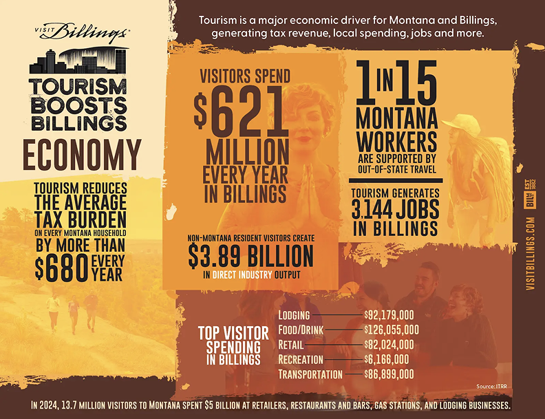 Tourism brings revenue  into our community, supporting local businesses, creating jobs and helping fund city services. Tourism strengthens our economy while also showcasing the spirit, culture and hospitality that make Billings a great place to live.